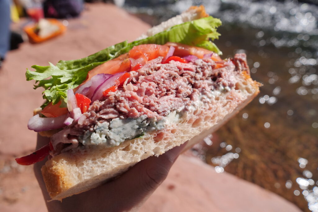 ランチはセドナのお店で買ってきたモリモリのサンドイッチ!ローストビーフ&ブルーチーズの組み合わせ最強!